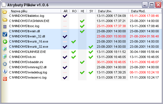 Program służy do hurtowej zmiany atrybutów plików, dat utworzenia i ostatniej modyfikacji